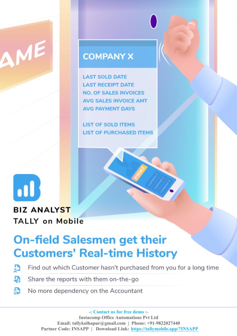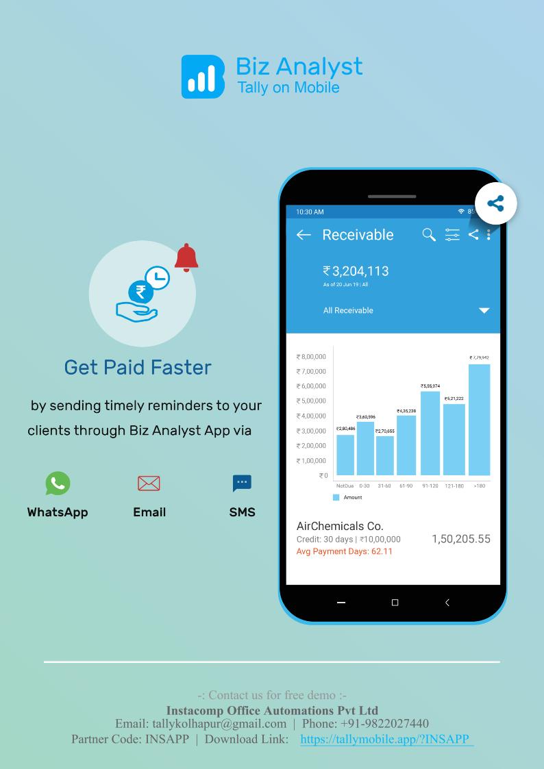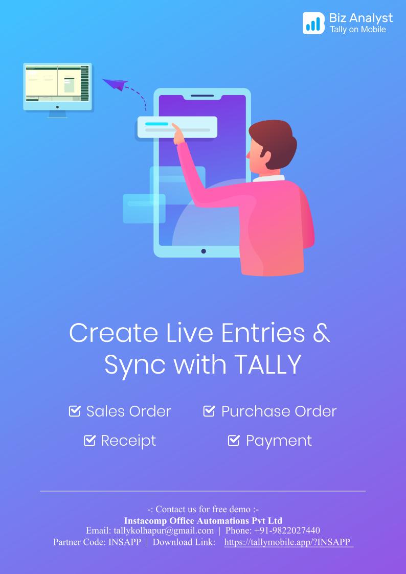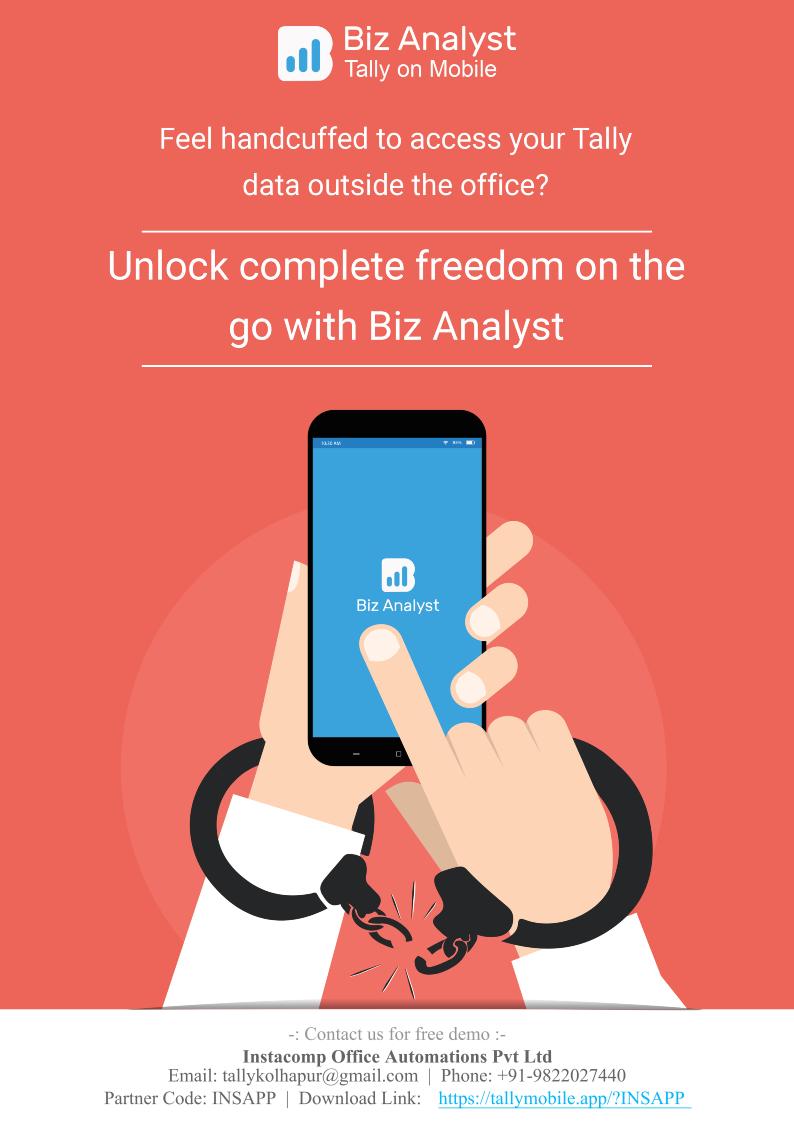 Biz Analyst Tally mobile app brings real time information & allows you to access your Tally ERP9 data anytime / anywhere. It is securely synced with your Tally ERP9 installation.