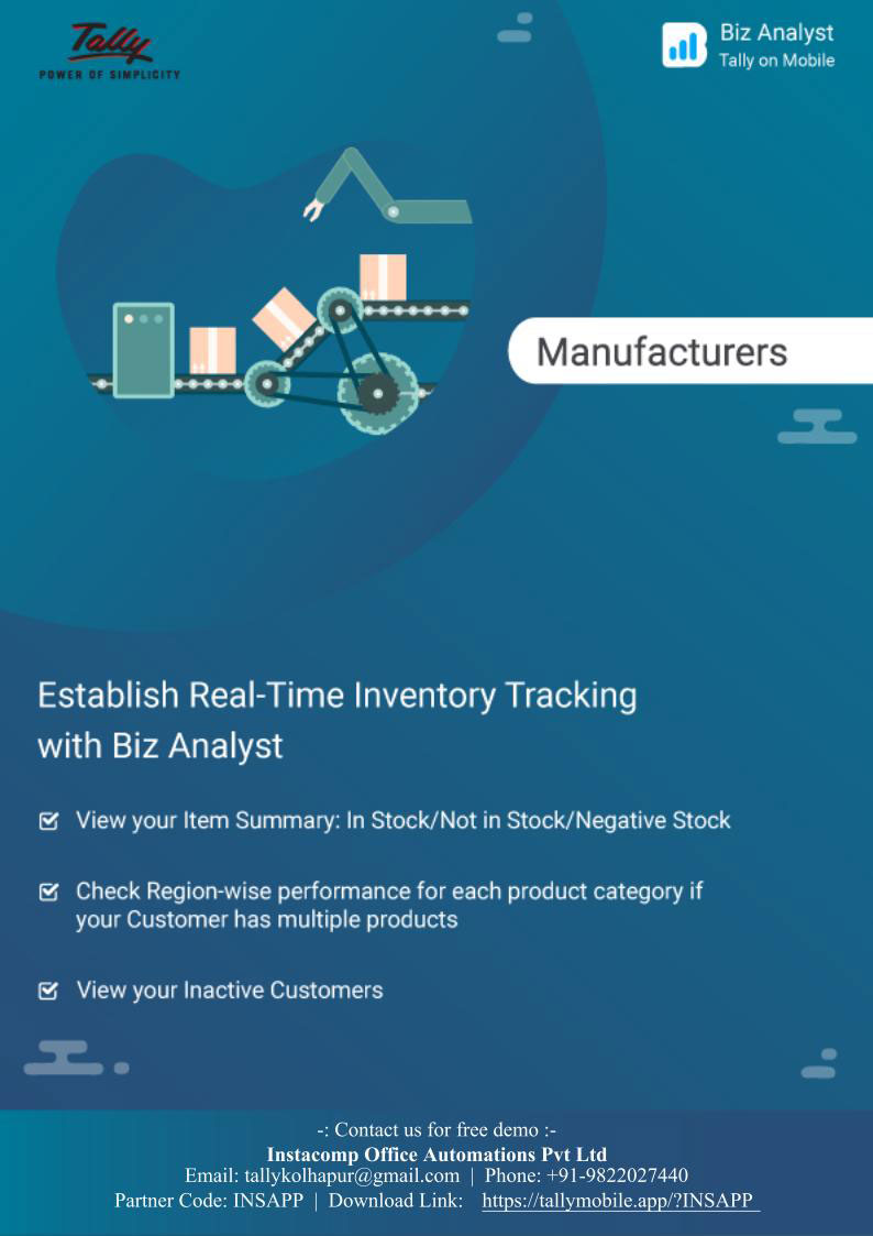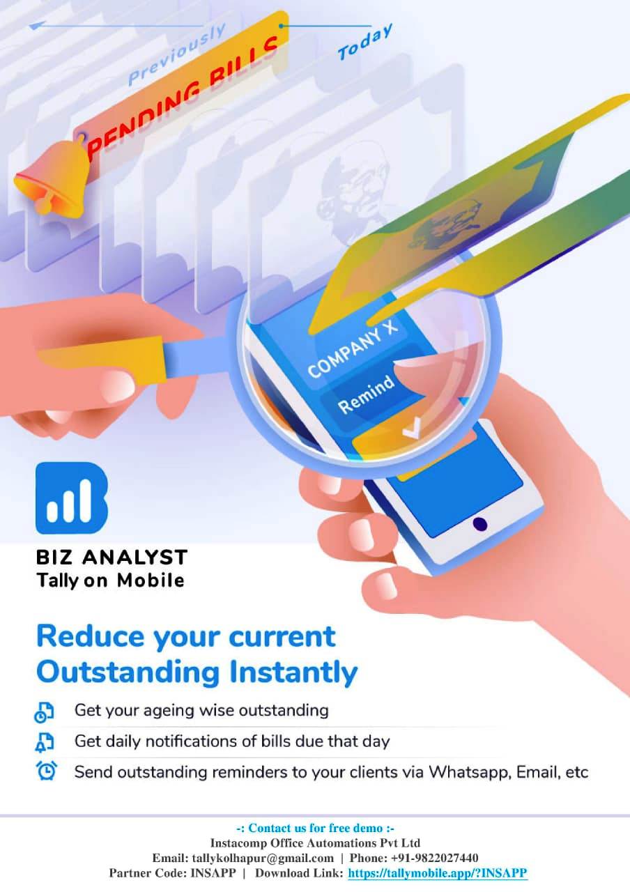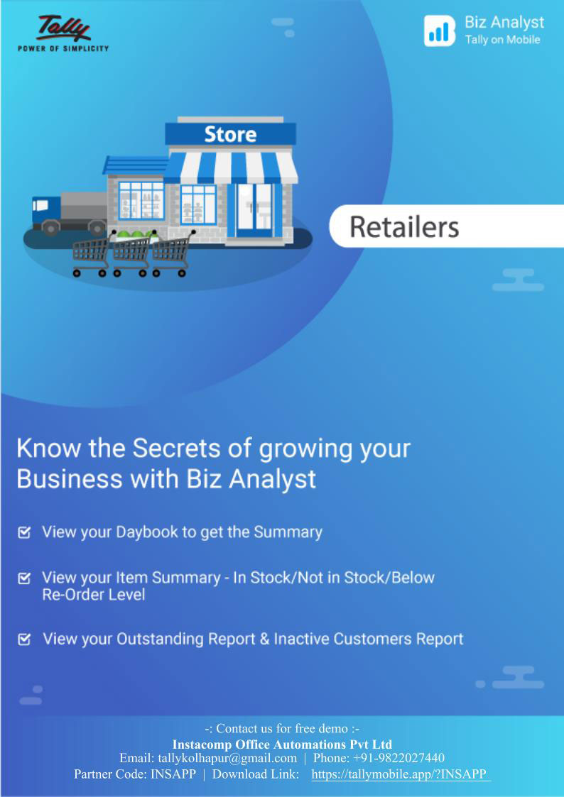 Biz Analyst Tally mobile app brings real time information & allows you to access your Tally ERP9 data anytime / anywhere. It is securely synced with your Tally ERP9 installation.